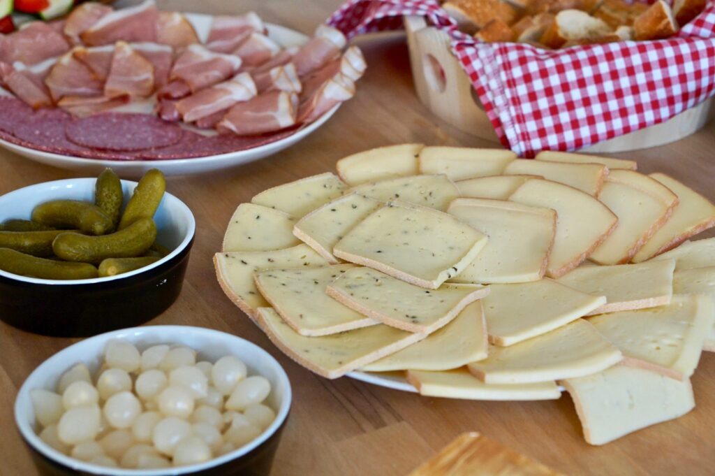 Raclette, ein Gericht mit Schweizer Käse, ist eine beliebte Wahl für ein geselliges und interaktives Essen. Auch Berliner Krapfen mit Marmelade oder Sahne sind beliebt.
